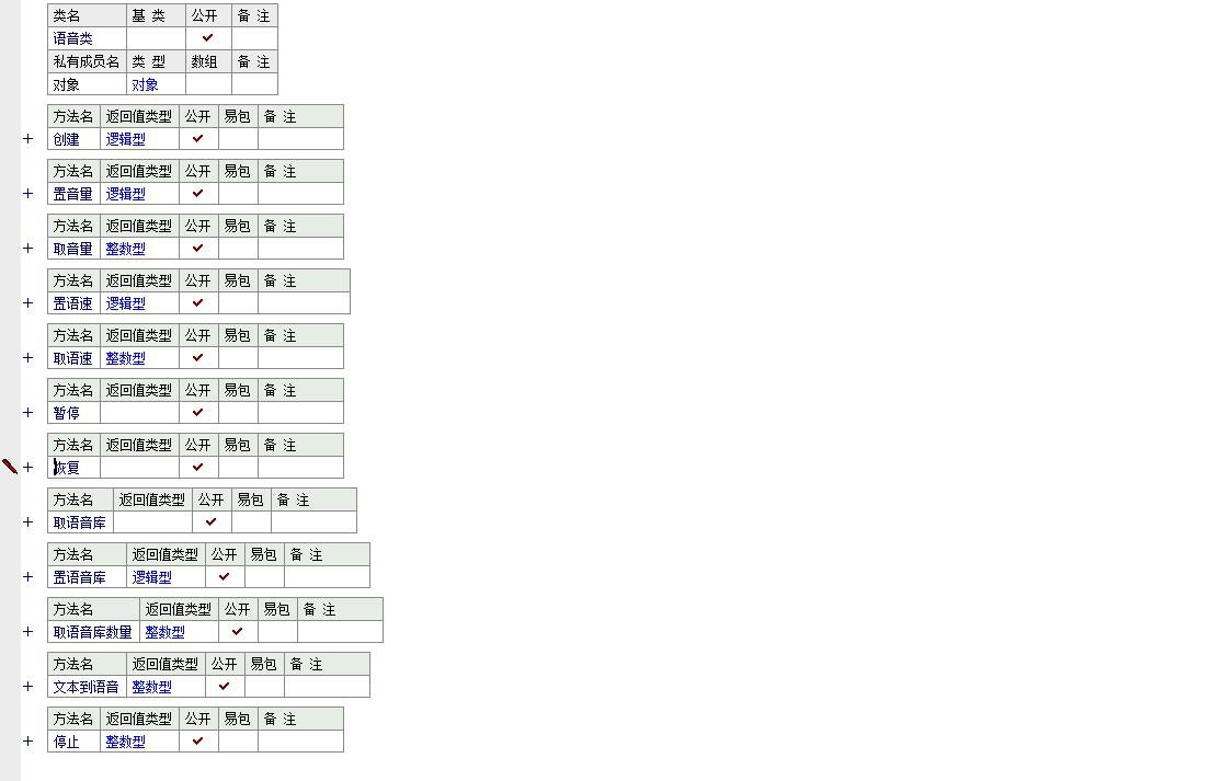 程序的核心部分是一个名为“语音类”的程序集,其中包含了多个子程序,用于实现不同的功能。例如,“创建”子程序用于初始化语音对象;“置音量”和“取音量”子程序分别用于设置和获取语音的音量;“置语速”和“取语速”子程序用于调整和读取语音的语速;“暂停”和“恢复”子程序用于控制语音的播放状态;“取语音库”和“置语音库”子程序用于获取和设置可用的语音库;“取语音库数量”子程序用于获取语音库的数量;“文本到语音”子程序用于将输入的文本转换为语音输出;“停止”子程序用于停止当前的语音播放。