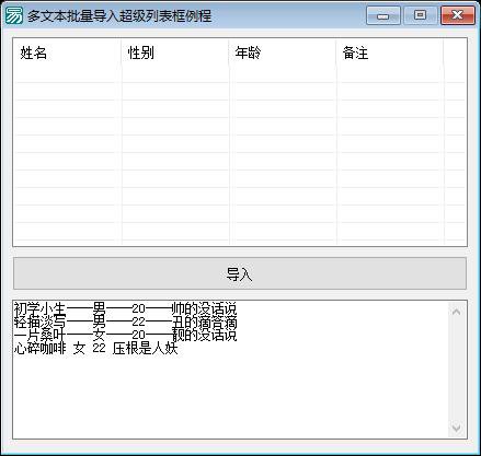 功能说明:该程序的主要功能是将用户在编辑框中输入的多行文本进行分割,并将其按照空格分隔后,插入到超级列表框中,以表格形式展示。程序通过读取用户输入的内容,按行分割成数组,再对每一行按空格进一步分割,最终将每个单元格的内容填入超级列表框的相应位置,实现数据的结构化展示。标题“文本分割与表格显示程序”准确概括了该程序的核心功能和用途。