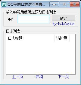 功能说明:该程序是一个用于获取和刷取QQ日志访问量的工具。主要功能是通过输入QQ号码,从QQ空间中读取对应的日志列表,并展示日志标题、访问量和日志ID。用户可以通过点击“开刷”按钮,对选中的日志进行访问量刷取操作,同时程序会自动更新访问量数值。此外,程序还支持分页浏览日志,以及通过时钟定时器实现自动刷取功能。程序的核心功能与“刷访问量”相关,因此可以总结为一个QQ日志访问量刷取程序。