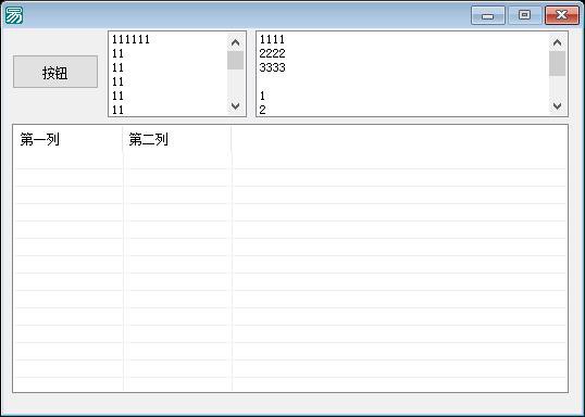 功能说明: 该程序是基于易语言环境开发的窗口应用程序,主要通过图形用户界面实现两个列表数据的同步读取与合并展示功能。程序的设计目标是解决用户需要将两组独立列表数据进行并行查看、核对或整合的需求。