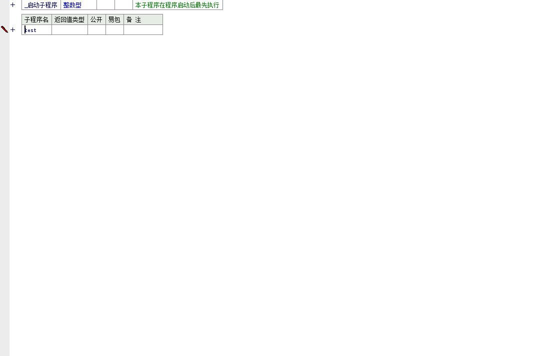 程序启动后,通过 `_启动子程序` 调用主逻辑子程序 `test`。在 `test` 子程序中,首先实例化 Excel 应用程序对象(`App.创建 ()`),并将其设置为可见状态(`App.置可视 (真)`),以便用户直观地观察操作结果。随后,程序会创建新的工作簿(`Method New`)和工作表,准备操作环境。