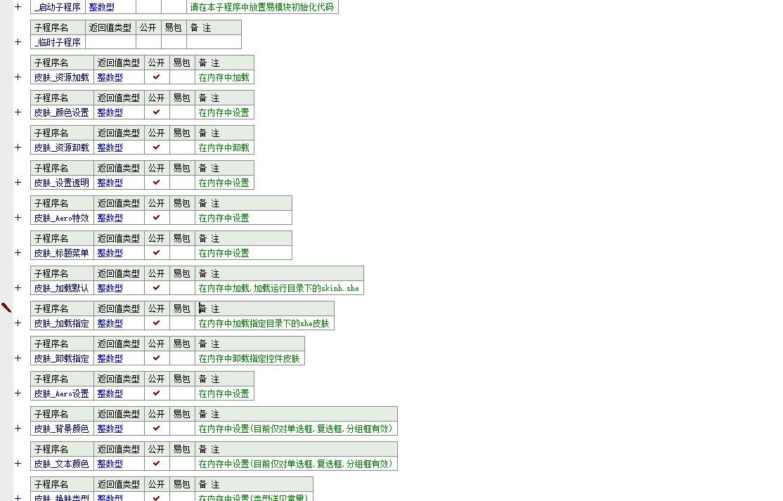 功能说明:该程序是一个基于易语言开发的界面皮肤美化与管理模块,主要封装了 SkinH 皮肤引擎的相关功能。程序的核心目的是为易语言编写的软件提供丰富的界面定制能力,包括皮肤加载、颜色调整、透明效果设置以及控件样式修改等。