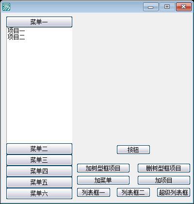 功能说明:该程序是一个基于易语言开发的图形用户界面(GUI)演示程序,核心功能是实现一个可交互、层级化、动态扩展的“卷帘式菜单”系统,并集成多种常用控件(列表框、超级列表框、树型框等)进行统一管理和操作。程序启动时,通过“卷帘式菜单1”构建主菜单导航结构,依次将“菜单一”(绑定列表框1)、“菜单二”(绑定列表框2)、“菜单四”(绑定超级列表框1)、“菜单五”(绑定树型框1)、“菜单六”(绑定子卷帘式菜单2)以折叠/展开形式组织,形成类似Windows资源管理器或现代UI中的侧边栏导航效果;其中“菜单六”嵌套了二级卷帘菜单“卷帘式菜单2”,体现菜单的层级嵌套能力。各按钮事件对应不同控件的动态操作:按钮1向列表框1添加带时间戳的新项目并自动选中;按钮2向列表框2添加固定文本项并选中;按钮3向超级列表框1插入新表项(含时间戳),并自适应列宽;按钮4在卷帘式菜单2中动态新增子菜单项;按钮5向当前选中的子菜单内添加新项目;按钮7、6、8分别实现树型框的根节点添加、当前节点删除、子节点添加(支持父子层级扩展);双击和右键事件虽已声明但被注释,表明具备进一步交互扩展潜力。此外,程序启用XP风格界面美化,并在启动时初始化菜单选中状态(现行选中菜单=0)。整体上,本程序并非面向具体业务场景的实用工具,而是一个用于展示易语言中“卷帘式菜单”控件与列表框、超级列表框、树型框等多类型组件协同集成、动态增删、层级管理及UI风格统一控制的综合性教学/演示示例,适用于易语言初学者理解复杂界面布局与事件驱动编程逻辑。