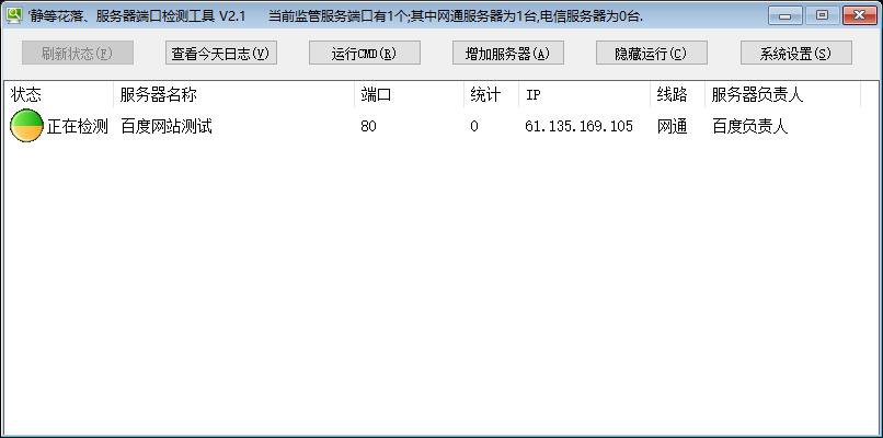 功能说明:该程序是一个基于易语言开发的轻量级服务器健康状态监控工具,主要功能是定时检测多个服务器指定端口的连通性,并在发生异常(如端口不可达)或恢复时,通过飞信HTTP接口向管理员发送短信通知。程序启动后读取配置文件(set.ini)中定义的服务器列表,每个服务器条目包含名称、IP地址、端口号、负责人信息、联系方式及飞信账号密码等字段;所有服务器信息以表格形式展示在主窗口的超级列表框中,并实时显示检测状态(“等待检测”“正在检测”“连接正常”“连接失败”等),支持托盘运行(/hide参数)和管理员通知模式(/admin参数)。检测逻辑通过TCP连接尝试实现(使用客户1.连接()),若连续多次失败则判定为异常(依据最大错误数阈值),并在日志中记录;当检测到服务从异常恢复为正常时,自动触发飞信HTTP API发送恢复告警短信至预设的多个管理员号码(支持双账号冗余通知)。程序具备日志自动归档功能(按日期生成log文件)、界面刷新控制(1秒周期)、多线程检测防界面卡顿、以及双击列表项可触发远程诊断等交互能力。整体定位为面向中小IT运维场景的免安装、低资源占用型服务器端口级可用性巡检与告警系统。