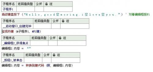 功能说明:该程序的主要功能是通过模拟键盘输入特定的字符串。其核心子程序`高级键盘按下`接收一个字符串参数,该字符串可以包含普通字符和一些特殊键(如Ctrl、空格等),并根据这些字符模拟相应的键盘按键操作。此外,程序还设置了一个热键F1,当用户按下F1键时,会触发执行预设的键盘模拟动作(即输出“Hello, good morning. I love you.”)。另外,程序还包括了将文本转换为键代码的功能,并在初始化时显示一些调试信息。总的来说,这是一个用于自动化键盘输入的小工具。