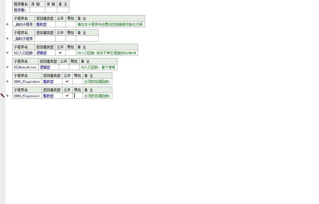 3. **Dll入口函数**:这个子程序类似于其他语言中的DLLMAIN函数,是动态链接库的入口点。它接收三个参数:DLL实例句柄、调用类型和保留参数。根据调用类型的值,进行相应的处理。如果调用类型为1,则将DLL实例句柄赋值给全局变量`g_hModule`;如果调用类型为0,则不执行任何操作。最后返回真(逻辑型)。